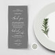 C'est la moderne classe gris foncé thème, Dinner Place Setting Thank You Cards. Partagez l'amour et montrez votre appréciation à vos invités, quand ils s'assoient à leur siège et lisent ce charmant remerciement personnalisé vous place la carte de réglage. C'est une façon merveilleuse de commencer votre fête spéciale !
