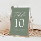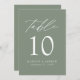 Cartes de numéro de table mariage tendance et minimaliste avec lettrage moderne blanc avec "Table" dans script de calligraphie moderne. Le design se compose d'un arrière - plan vert sage ou d'une couleur de votre choix. Le dessin se répète à l'arrière. Pour commander les cartes de table verte sage : ajoutez votre nom, votre date de mariage et votre numéro de table. Ajoutez chaque numéro à votre panier individuellement et retirez-le lorsque vous avez terminé.