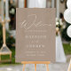 Elégant signe acrylique de bienvenue de mariage avec "Welcome" dans un script moderne de calligraphie blanche avec un arrière - plan acrylique taupe. Personnalisez le signe mariage taupe en ajoutant vos noms, votre date de mariage et votre emplacement de mariage. Le panneau d'accueil vertical est conçu pour coordonner avec notre collection de mariage Modern Elegance et est disponible en d'autres couleurs/options de style.