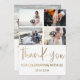 Carte de remerciement de mariage minimaliste moderne. Caractérisée par une grande calligraphie élégante en feuille d'or fausse et des espaces pour ajouter 4 de vos photos de mariage spéciales. Facile et amusant à personnaliser pour créer vos propres cartes de 'Remerciements' uniques.