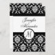 Mariage Monogram Damask Black & White Invitation