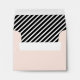 Design monogramme simple et épuré, noir et blanc, noir et chic moderne, et revêtement à rayures noir et blanc, parfait pour un mariage mariage moderne ou de printemps. La couleur arrière - plan de l'enveloppe rose pâle peut être changée pour correspondre à votre thème mariage, il suffit de cliquer sur le bouton "Customiser!", puis de modifier la couleur sous la section "Couleur de l'enveloppe". Enveloppe personnalisée RSVP mariage pour votre commodité. Voir toutes les pièces correspondantes dans la collection "Color editable modern minimalist design" ci-dessous.