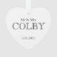 Typographie classique sur arrière - plan blanc avec MR&MRS personnalisés, MARIAGE DATE en noir, BIBLE VERSE personnalisé en noir sur le dos. Facile à personnaliser le texte, la couleur du texte, la police. Idéal pour TOUTES les festivités Mariages, Événement, Nouveaux mariés, Fête nuptiale, Premier ornement de Noël ensemble. Moderne, minimaliste, Coeur plein d'amour. Une conservation intemporelle. Mélanger et faire correspondre des collections Keepsaké / Mariage entières par TMCdesigns.