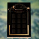 Mystical Black Gold Sun Moon Stars Astronomy Mariage Acrylique Seating Chart présente soleil doré, lune et étoiles avec un cadre doré sur un arrière - plan noir. À l'intérieur du cadre est le texte "Welcome" dans l'élégant script de calligraphie dorée et vos informations personnalisées sur le plan des sièges de réception de mariage. Personnalisez en modifiant le texte dans les zones de texte fournies. Conçu pour vous par ©Evco Studio www.zazzle.com/store/evcostudio