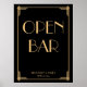 Gold et noir Art Déco Great Gatsby mariage Open Bar imprimé avec cadre doré et texte personnalisable - vous pouvez ajouter le nom de la mariée et du marié et la date du mariage. Les dimensions de l'affiche sont de 18 pouces par 24 pouces (vertical).
