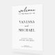 Symbole de bienvenue mariage avec design élégant de typographie moderne en noir et blanc.