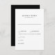 Simple carte de réponse RSVP de mariage noir et blanc. Options Pour Le Dîner.