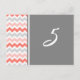 Elégante et classique pêche rose orange, gris et blanc mariage carte numéro de table avec motif rétro et amusant chevron zigzags. Customisez ces cartes pour créer des cartes numériques personnalisées pour chaque table de votre mariage. Motif disponible dans une large gamme de produits mariages correspondants.