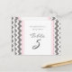 Elégante et moderne, pastel clair rose, gris fusain foncé et blanc mariage carte de numéro de table avec amusant rétro chevron zigzags rayures motif. Customisez ces cartes pour créer des cartes numériques personnalisées pour chaque table de votre mariage. Ajoutez vos noms et votre date de mariage. Motif disponible dans une large gamme de produits mariages correspondants.