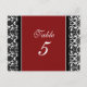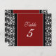 Elégante et classique rouge, noir et blanc mariage carte numéro de table avec romantique motif vintage à damas fleuri. Customisez ces cartes pour créer des cartes numériques personnalisées pour chaque table de votre mariage. Motif disponible dans une large gamme de produits mariages correspondants.