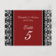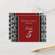 Elégante et classique rouge, noir et blanc mariage carte numéro de table avec romantique motif vintage à damas fleuri. Customisez ces cartes pour créer des cartes numériques personnalisées pour chaque table de votre mariage. Ajoutez vos noms et votre date de mariage. Motif disponible dans une large gamme de produits mariages correspondants.