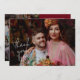 Carte de remerciements romantique avec deux de vos photos de mariage, une plus petite d'un côté et une plus grande de l'autre. Merci dans un script d'écriture manuscrite moderne, vos noms aussi, avec un texte de remerciement imprimé ci-dessus.