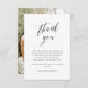 Carte de remerciement simple mariage avec photo personnalisée. Ce design intemporel présente une typographie serif classique, des lettres de script élégantes et une mise en page typographique moderne. Conçu pour correspondre à nos invitations "Simple Script Calligraphy Fiançailles Photo Mariage". Consultez la collection liée sur cette page pour les objets correspondants ou visitez notre magasin pour plus de designs mariages.