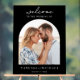 Personnalisez votre décor mariage avec ce panneau d'accueil mariage. Comprend votre photo personnalisée avec un design de typographie simple et élégant en noir et blanc.
