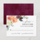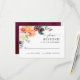 Complétez votre suite avec cette carte de réponse de mariage avec un coin floral aquarelle en rouge bourgogne, rose et tons automnaux chauds. La typographie « veuillez répondre » est classique et raffinée, avec une mise en page épurée pour les noms et la réponse de présence. Parfait pour les mariages d'automne, de jardin et de vignoble, et facile à personnaliser.