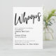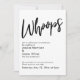 La distinction de cette suite est due à la police de script manuscrite décontractée et audacieuse utilisée pour les phrases d'accent. Si vous êtes en position de devoir informer vos invités mariages que vous avez dû changer votre grand rendez-vous, voici une option humoristique. Dans cet article, la police de caractères manuscrite a été utilisée pour créer un graphique simple représentant le mot "Oups". Utilisez les champs modèles pour ajouter vos détails personnels et faire de ce design moderne votre propre. L'arrière - plan blanc peut être changé à n'importe quelle couleur que vous préférez. Veuillez communiquer avec toute demande spéciale ou customiser de l'aide. // 105 //