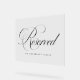 Ajoutez une touche d'élégance et de sophistication à votre journée de mariage avec ce panneau mariage personnalisable, magnifiquement conçu avec "Reserved" dans un magnifique script florissant. Parfait pour marquer des sièges spéciaux pour les familles, les invités VIP ou toute personne qui mérite une place de choix dans votre célébration, ce panneau élève votre décoration mariage avec son style chic et intemporel. Conçu avec soin, ce panneau est entièrement personnalisable pour correspondre à votre thème mariage, à votre palette de couleurs et à votre style personnel. Que vous soyez en train de créer des places réservées pour la cérémonie, la réception ou les invités VIP, ce panneau est l'ajout parfait à votre décor mariage.