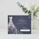 Diamants blancs brillants robe mariage sur un arrière - plan bleu marine de minuit noir en tableau noir faisant une simple carte moderne élégant de conseil de douche nuptiale.