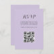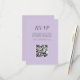 Cette simple carte RSVP de mariage présente du texte gris clair sur un arrière - plan mauve doux, offrant un look moderne et élégant. Un espace dédié à un code QR permet aux clients d'accéder rapidement à votre site Web mariage ou aux détails RSVP, ajoutant une touche de commodité à ce design minimaliste. Parfait pour tout thème mariage contemporain, cette carte RSVP combine fonctionnalité et esthétique élégante et sobre.