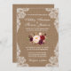 Dentelle Rustique Mariage Burlap avec aquarelle Bourgogne Marsala Floral Invitation
