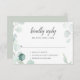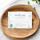 Invitation vos invités à répondre avec grâce et style avec notre carte Mariage RSVP magnifiquement conçu. Au sommet de cette carte élégante, le mot "Kindly" est inscrit avec art dans un script moderne, symbolisant la douceur de votre demande. Il est harmonieusement associé à un délicat motif d'eucalyptus aquarelle, tissant dans une touche de sérénité naturelle et de sophistication sobre. Le design saisit parfaitement l'essence d'un mariage raffiné et d'inspiration nature. Cette carte RSVP est plus qu'une simple formalité, c'est une expression de goût du thème de votre mariage, mêlant harmonieusement le charme de la calligraphie moderne à la beauté tranquille de l'eucalyptus, assurant à vos invités une partie de votre journée spéciale dès leur réponse.