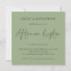 Invitation De Réception Du Mariage Sage Green Après-Midi. Un élégant style d'écriture pour la réception de l'après-midi et le reste du texte que vous pouvez facilement personnaliser. Le texte et les couleurs arrière - plans peuvent être changés en n'importe quel ou quatre choix via l'option customiser plus loin.