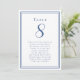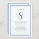 Notre liste d'invités de numéro de table mariage tendance comprend un modèle pour le numéro de table et la liste des invités à la table. Personnalisez le lettrage et le script élégants avec les noms et les détails de votre invité dans un bleu classique sur un arrière - plan blanc immaculé. Un ajout parfait pour un mariage, un anniversaire ou une grande fête de fiançailles. L'envers est un double de l'avant permettant une visualisation facile des deux côtés. Demande de couleur personnalisée acceptée.