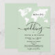 Planifiez votre mariage dans une destination romantique ? Invitez vos invités avec cette invitation simple et moderne avec une carte du monde et votre destination personnalisée marquée d'un cœur amovible.