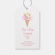 Cette étiquette cadeau de mariage sur le thème de la glace est décorée de fleurs aquarelles et d'un cornet de glace.