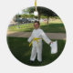 Great martial arts Christmas ornament for the player you know. The front features a crazy looking cartoon duck that has a black belt in karate. Next to the drawing is a custom space for a name and year. The back has a space for a custom photograph of your choice.
