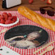 Stylish and elegant vintage young Marie Antoinette portrait on black with french scroll and a lock and key with birds and butterflies. Perfect for any celebration, these wonderful party paper plates will undoubtedly enchant your guests. © Julie McIver