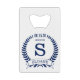 Cet ouvre-bouteille est parfait pour le marié. Il est traditionnel mais moderne avec une couronne de laurier bleue et une bannière avec la date du mariage, le titre/profession et l'initiale et le prénom en bleu. Ils seraient parfaits pour un enterrement de vie de garçon ou un week-end. Le titre peut être changé en meilleur ami, garçon d'honneur, ouvreur, etc.