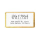 Votre adresse personnelle personnalisée d'une manière simple... dans un étiquette blanc avec deux lignes de texte alignées par le centre, et avec les noms de mariée et de mariée et le nom de famille écrits dans des styles de police stylisés, avec bordure fausse or
