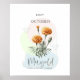 October's birth flower is the vibrant and striking Marigold, often symbolizing passion, creativity, and courage. This print makes for a meaningful keepsake or a charming addition to any living space or bedroom. You will personalize this print with the recipient's name, or your own if it's not "Emily," to honour their birth month. It features the specific month and flower name, accompanied by inspiring and motivating words related to the flower at the bottom. The print presents a lovely cluster of golden-hued flowers set against an abstract pastel-coloured backdrop, creating a nostalgic retro aesthetic.
