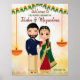 Marigold garlands with cute Hindu couple Tamil wedding welcome sign.