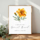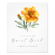 A beautiful marigold wedding guest book sign for the bride. Features elegant minimalist and modern boho watercolor designs in yellow orange and green for autumn spring or summer celebrations.