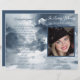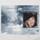 Ce design présente des nuages d'aquarelle marine avec un cadre pour une photo à l'avant et la couleur de coordination à l'arrière avec la pièce pour les détails de service et la nécrologie. ( Ceci est destiné à être plié en deux)