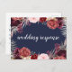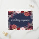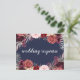 Carte postale RSVP Marine Fall Marsala Peony Wedding - présente un arrière - plan bleu marine avec différentes pivoines, roses et autres éléments floraux dans les tons de Marsala, bordeaux, bleu rose, gris et plus. Demandez à vos invités de répondre à votre demande RSVP via cette option abordable — choisissez entre mat ou semi-perdant. Consultez la collection correspondante de cette page pour terminer la recherche de votre événement.