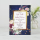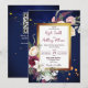 Lys blancs rose de Bourgogne sauge verdure bleu marine arrière - plan or géométrique cadre modèle floral faire-part de mariage avec code QR RSVP à l'arrière.