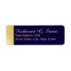 Élégant label d'adresse de retour élégant avec nom dans le style de police de calligraphie or et adresse dans le style de police professionnel or avec bordure gauche or sur arrière - plan bleu marine. Parfait pour les affaires professionnelles et aussi parfait comme étiquettes d'adresse de retour mariage pour les invitations de mariage. Remarque : Les détails du papier sont simulés dans l'illustration. Il n'y aura pas de métal sur ce produit.