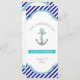 Bleu de marine, rayures blanches, cérémonie de mariage nautique d'ancrage et programme de fête. Un élégant design motif rayé à rayures bleu marine, rayures diagonales blanches, une ancre grise avec un coeur et une corde d'amour bleu aqua et votre texte dans un cadre avec une bannière turquoise. Moderne mais avec un look vintage dans un sens. Vous pouvez modifier la couleur arrière - plan et la couleur du texte en choisissant parmi plus de 200 couleurs à partir du graphique en couleurs Zazzle. Ce design élégant est un modèle entièrement personnalisable et fait partie d'un ensemble mariage parfait pour un mariage nautique d'été ou de plage.
