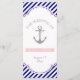 Bleu de marine, rayures blanches, cérémonie de mariage nautique d'ancrage et programme de fête. Un élégant design motif rayé avec des rayures en bleu marine, blanc, une ancre grise avec un coeur et une corde d'amour rose doux et votre texte dans un cadre avec une bannière rose. Moderne mais avec un look vintage dans un sens. Vous pouvez modifier la couleur arrière - plan et la couleur du texte en choisissant parmi plus de 200 couleurs à partir du graphique en couleurs Zazzle. Ce design élégant est un modèle entièrement personnalisable et fait partie d'un ensemble mariage parfait pour un mariage nautique d'été ou de plage.