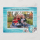 Big photo Christmas postcard in pretty marine blue with a tropical holiday theme - OR easily delete the starfish. A simple greeting on the front can be customized, with text on reverse for a greeting and signature. Rustic wood in tropical blue with white starfish and ball tree ornaments make a horizontal frame for your photo.