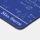 Le tapis de bureau mathématique bleu marine personnalisé est parfait pour votre espace informatique et l'utilisation quotidienne. L'impression de formules mathématiques manuscrites en blanc sur un arrière - plan bleu est parfaite pour supporter les couleurs de votre école. Illustré et dessiné par Patricia Alvarez.