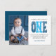 Carte de remerciements de premier anniversaire de garçon moderne, simple et élégant. Conception avec script brossé un, message de remerciement et une photo.