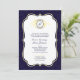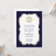 Le bleu marine et en filigrane jaunes/brocard encadrent le faire-part de mariage comportant un monogramme