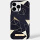 ce coque dispose d'un bleu marine foncé de minuit et d'or métallique antique simulé métal Abstrait minimaliste motif d'impression géométrique, avec une boîte en or inférieure et texte personnalisable dans une police sans serif minimaliste mince