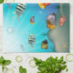 This colourful marine life scene features a large variety of saltwater creatures like Garibaldi fish, stingray, angelfish, sergeant major, corals, and jellyfish.