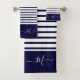 Moderne Marine Nautique Bleu blanc rayé Monogramme initial Élégant Chic Serviette de bain Set design par Sandy Closs