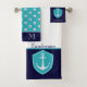Marine Nautical Anchor Bathroom White Teal Navy Bath Towel Set